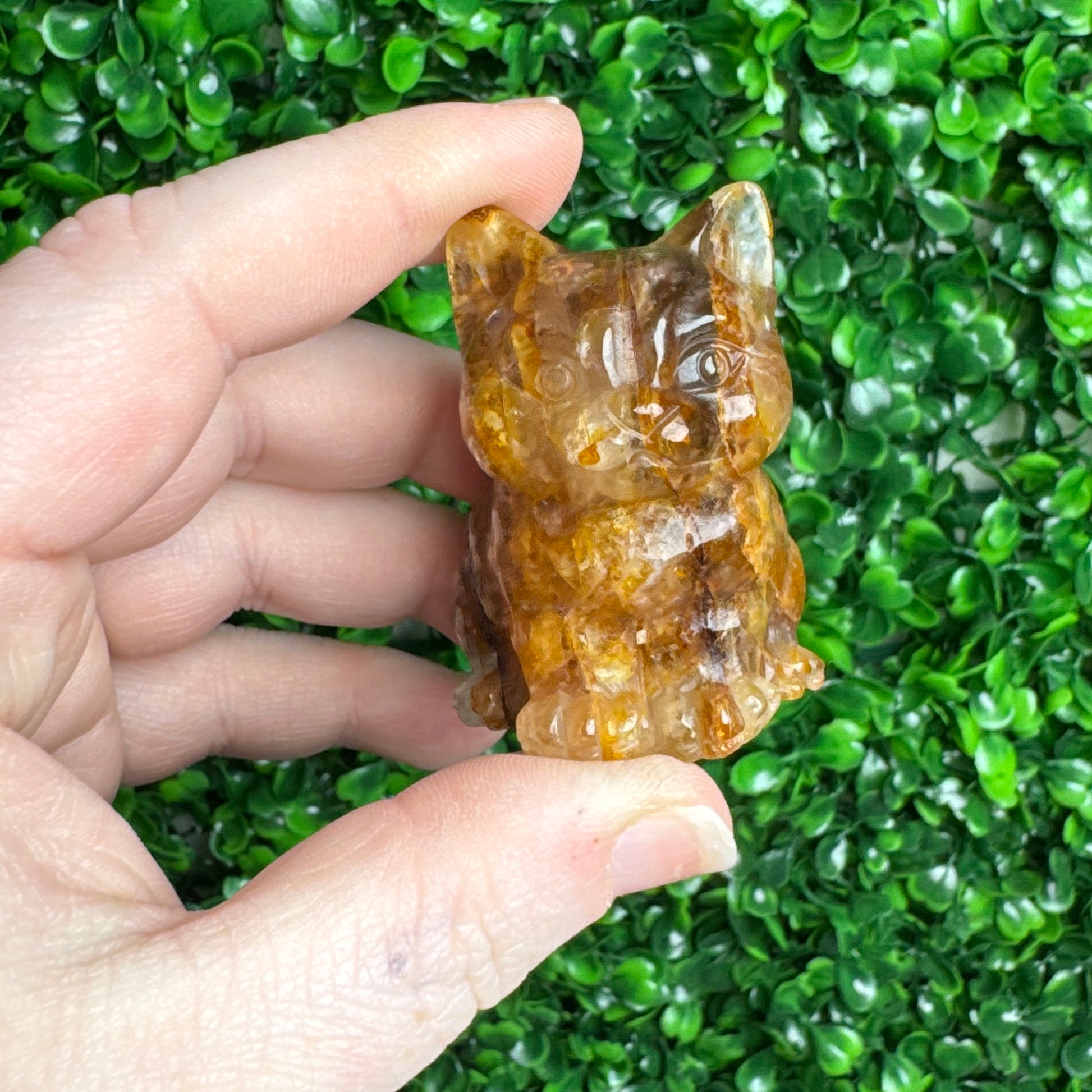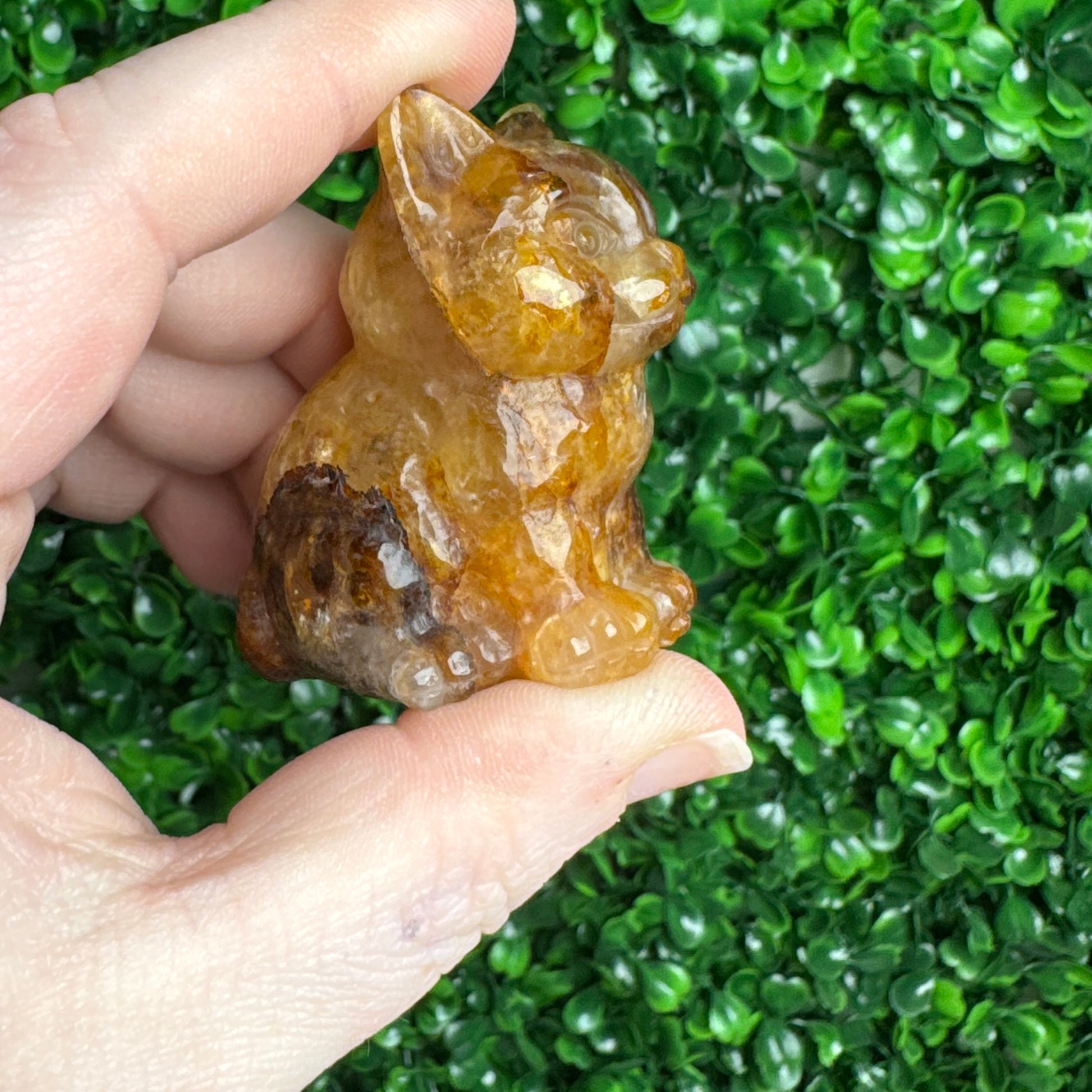Golden healer cat carving