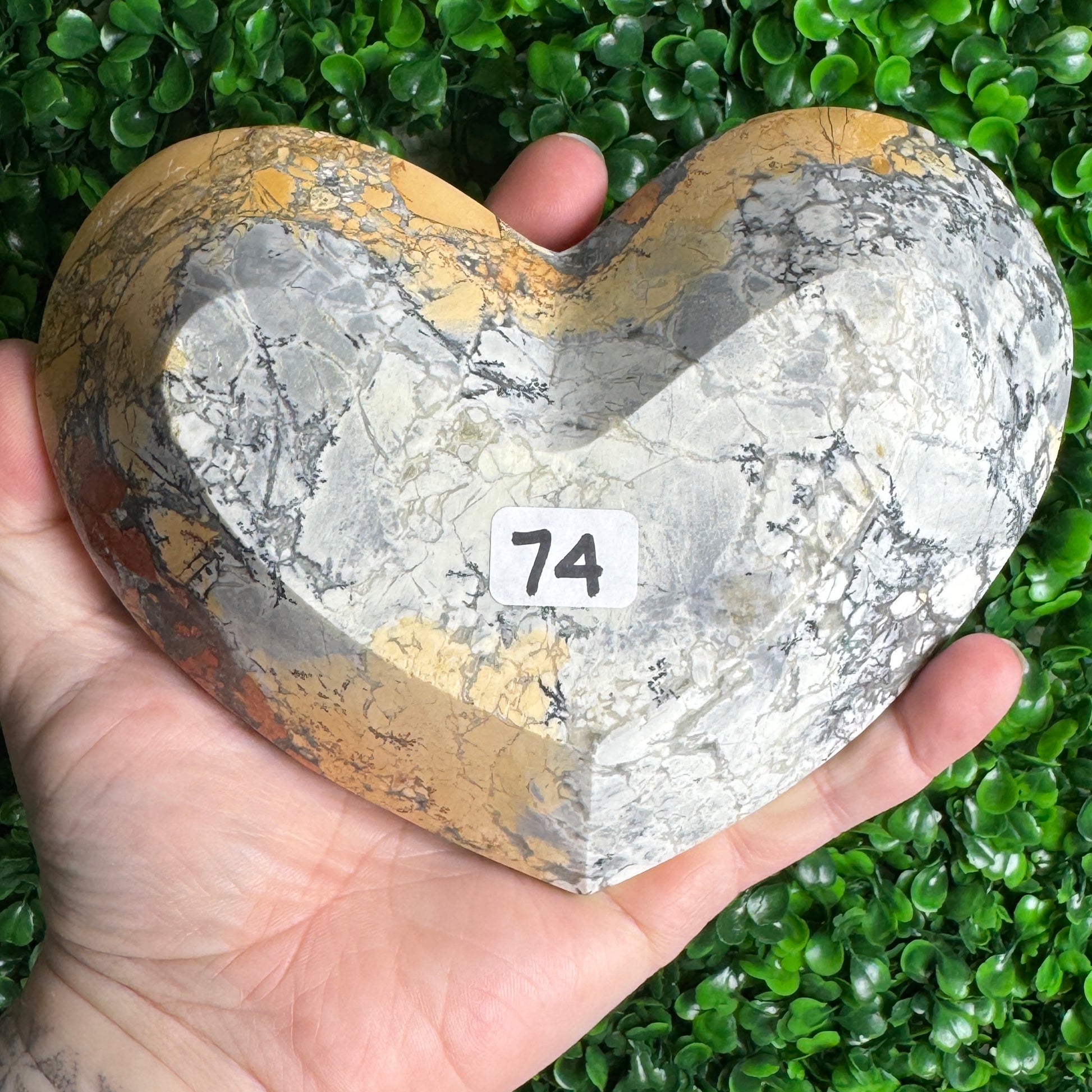 Large Maligano Jasper Heart Bowl Carving